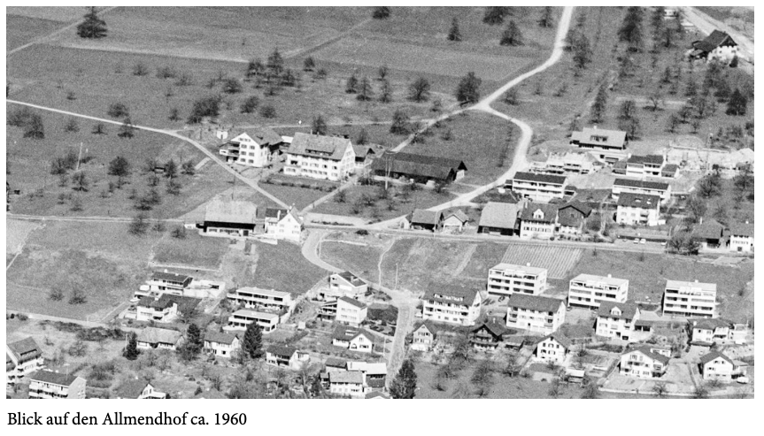 Männedorf, am rechten Zürichseeufer am südlichen Hang des Pfannenstiels gelegen, entwickelte sich aus einer Tradition der Landwirtschaft. Fischer, Bauern und Winzer bewohnten hauptsächlich das Dorf, dessen Kern bis heute am Seeufer liegt. Sie bewirtschafteten die Hügel, die vor allem Weinbauern zur besseren Bewirtschaftung in Terrassen verwandelten. Es entstanden bäuerliche Gebäudegruppen, die in ihrer Nutzung hauptsächlich Scheunen, Bauern- oder Gutshäuser waren und eng in Verbindung mit der umliegenden Natur standen. So finden wir heute das Areal des Allmendhofes als Zeuge seiner Geschichte vor. Am Rand der Landwirtschaftszone gelegen verweist schon der Namensteil «Allmend» auf die ursprünglich gemeinschaftlich-landwirtschaftliche Nutzung der Parzelle als bäuerliches Weingut. Historische Bilder zeigen auf, dass die Gebäude in ihrer Setzung immer wieder ergänzt und transformiert wurden.