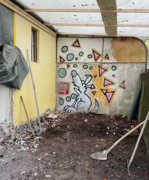 Es geht vorwärts im Bachwiesen→ in Ramsen - die Wände des Gartengeschosses sind aufgemauert. Alle Abbrüche am Bestand getätigt.