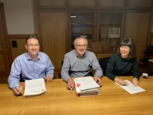 Fleissig trotz Sommerhitze: Das Baugesuch für das Projekt Wohnen PLUS→ im Alterszentrum Suhrhard wurde unterzeichnet und eingereicht.