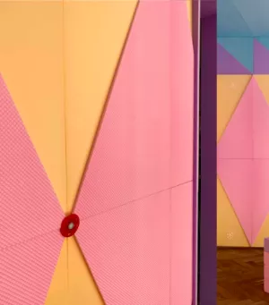 Die Kunst am Bau von Nic Hess→ im Atrium vom WohnenPLUS Surhard in Buchs ist fast fertig.