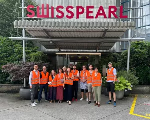 Wir haben heute das Faserzementwerk von SwissPearl→ besucht: Wer hat vorher gewusst, das der Werkstoff eigentlich ein Karton mit Zementzuschlag ist? Und dass ein Farblabor die Farbmischungen individuell nach Kundenwunsch herstellen kann? Ein sehr abwechslungsreicher Ausflug.